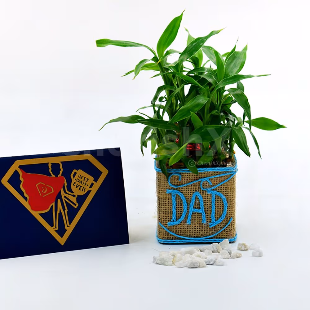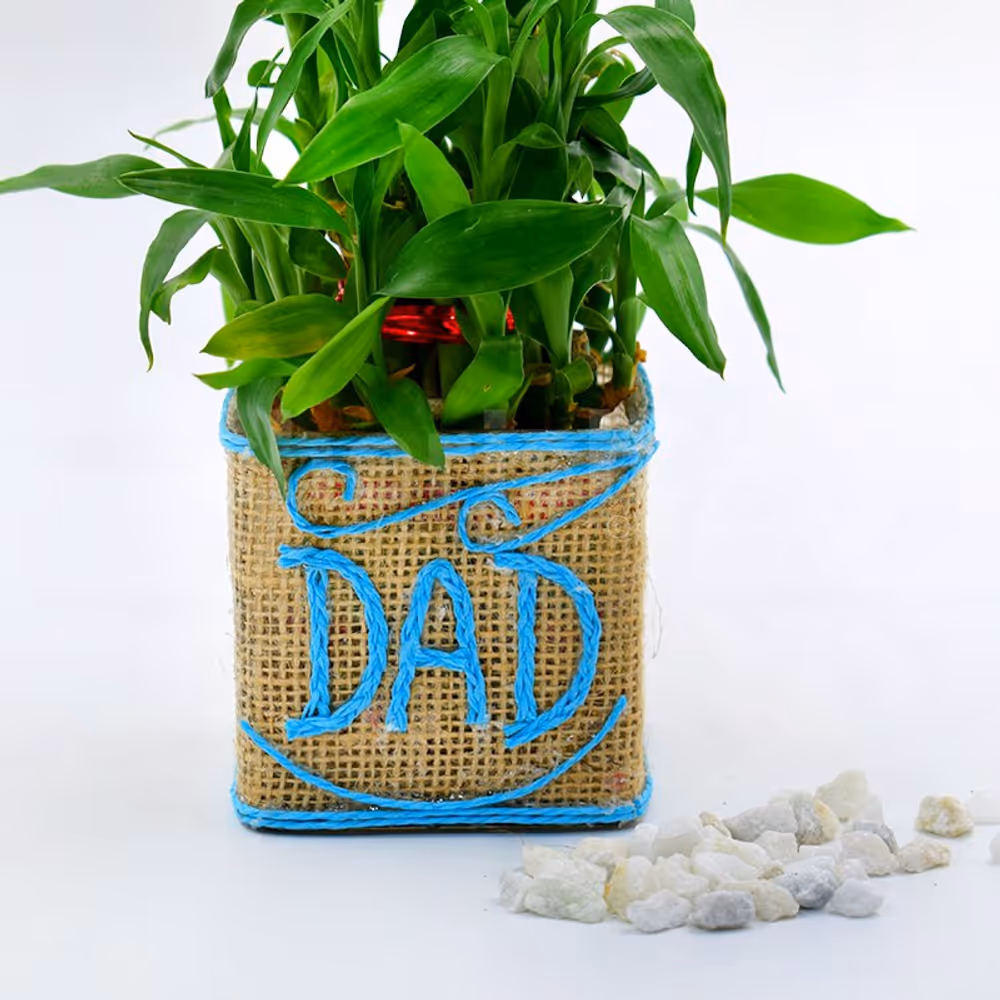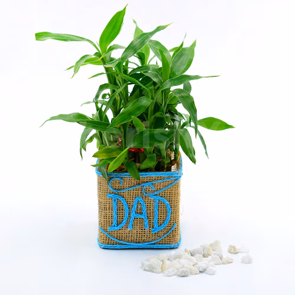Surprise your dad with a unique and everlasting gift. A bamboo plant-known for bringing endless good luck. This charming plant is grown in a designer jute pot with Dad embroidered on it, which not only purifies the atmosphere, but also gives your space a nice modern look.