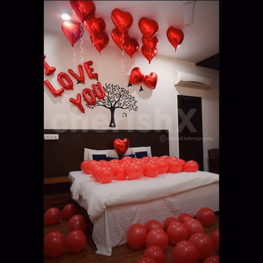 For the perfect romantic touch to your bedroom, CherishX curates this charming love decor to transform your home with an element of celebration, passion and exquisite decorations. This ambience is sure to transform your celebrations for you to truly have a unique night full of romance that you both would remember for years to come.