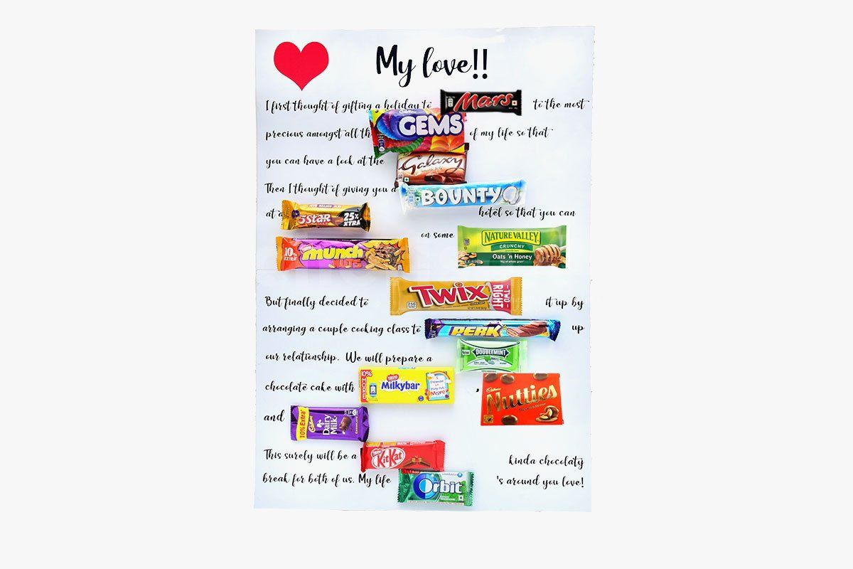 Here's a treat both to read and to eat. A letter written not only with words, but also with the help of chocolates, containing a sweet and heart-touching message for your loved one. Celebrate each day as though it is occasion an with your bae with our unique and thoughtful gifts. Bring a smile to their face and let them know that they are loved and cared for! The message in the letter is as follows: