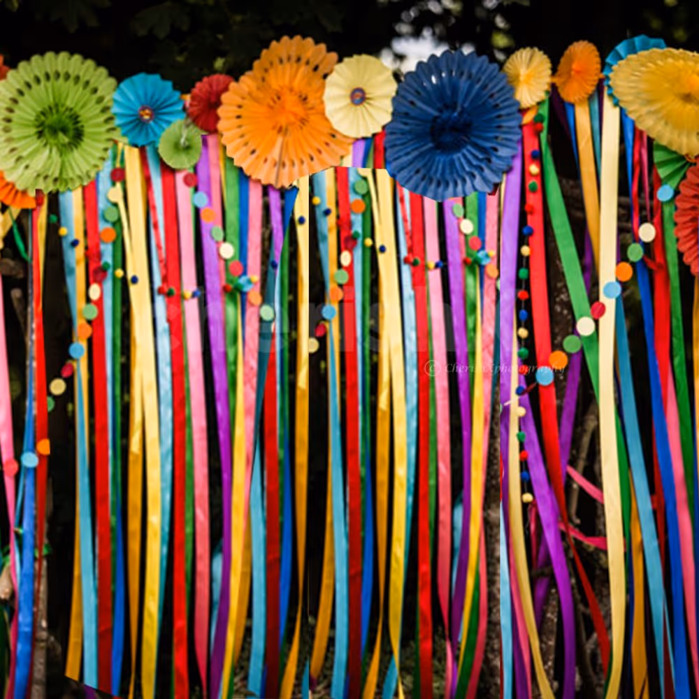 As the celebrations dawn upon us, CherishX brings this tastefully curated decor to make your home and your celebrations grand and exciting! A whimsical combination of vibrant paper rosettes and charming butterfly strings are set up exquisitely to create the most vibrant decor for your celebrations. This bright and colourful photo booth with vibrant hues is sure to transform your decor and give it the ideal quirky twist to your festivities.