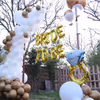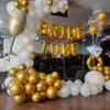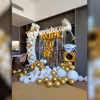 A beautiful balloon arch made with 150 golden chrome and white balloons