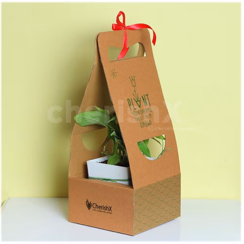 Surprise your loved ones with a unique and everlasting gift. A money plant -known for its endless good luck. This charming plant is kept in a cute white pot which not only purifies the atmosphere, but also gives your space a nice modern look.