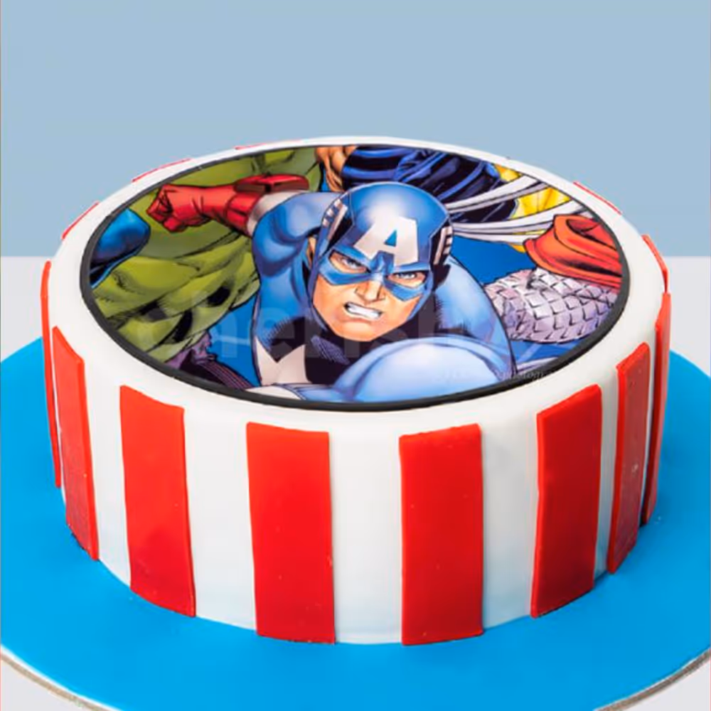 Indulge in a tasty treat with CherishX's range of awesome cakes with amazing flavours. Order this Captain America Photo Fondant Cake Delivered anywhere to celebrate a special occasion. Both Egg & Eggless Cakes available in Half Kg, 1 Kg or more. The cakes are baked with love and complete hygiene. Same day delivery and midnight delivery of cakes also available