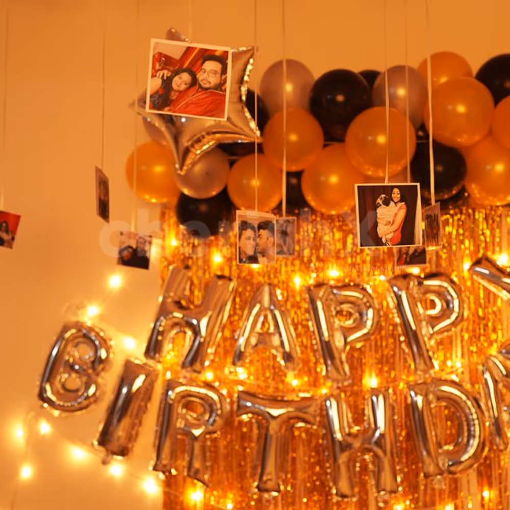 Celebrate any age with this Glorious Black and Golden Birthday decor and surprise a friend or family member on their birthday. Book this Glorious black and golden birthday decor and make them feel amazing and special.