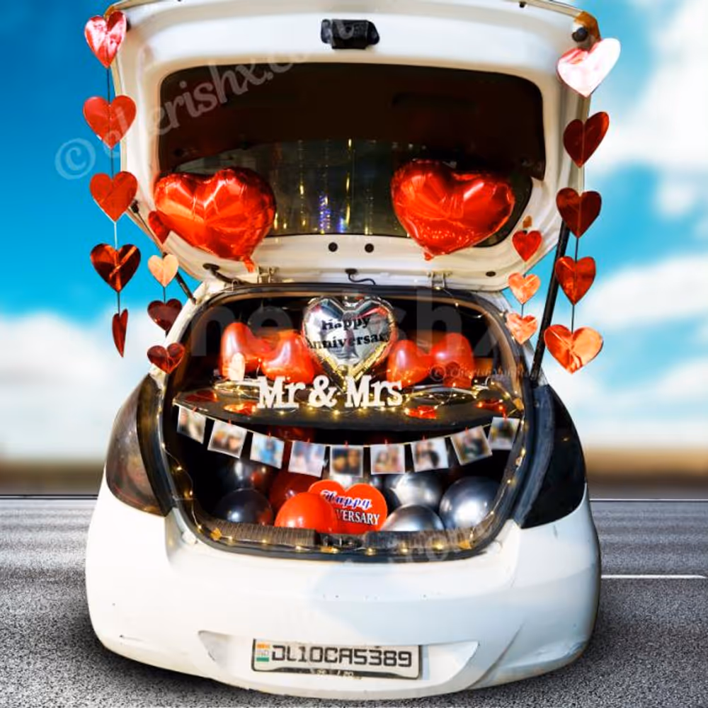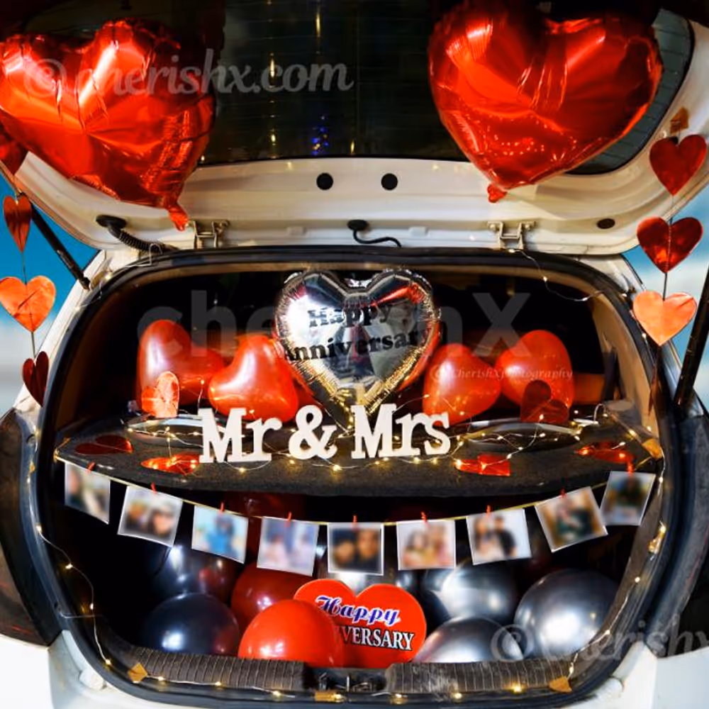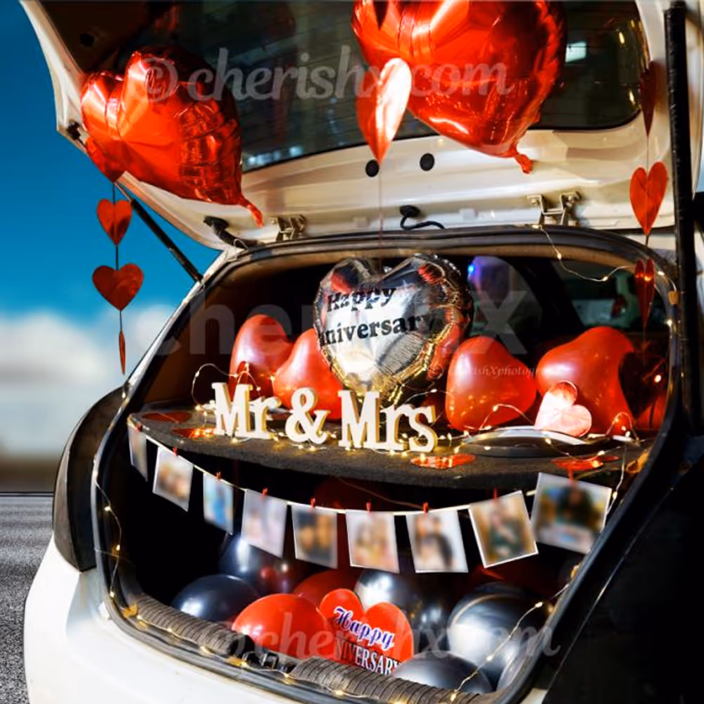 Looking for ways to surprise your partner on your wedding anniversary? Nothing can be better than choosing this Happy Anniversary Surprise Car Boot Decor. Take your surprise anywhere you want to celebrate your anniversary in a much more exciting way! With planning, you also need to focus on your execution. Therefore, to make it a success, CherishX is here to help you!