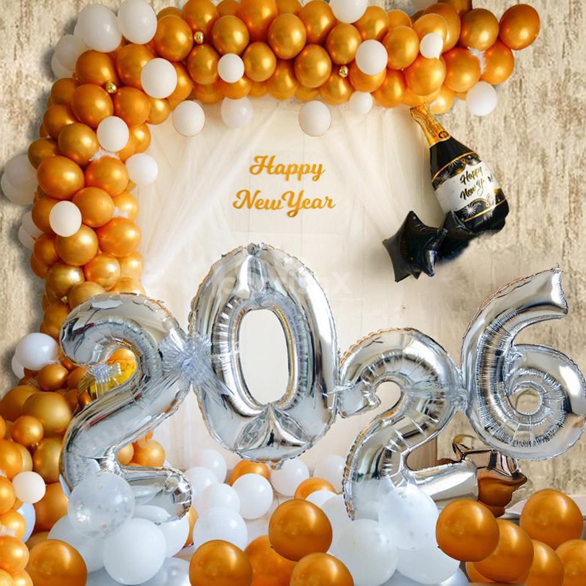 Having decorations at your party makes a whole lot of change. People become more excited to be at your place and you sure don’t want them to miss your party. This is why decorations are needed! Booking this beautiful Premium New Year Gold Decor will make it easier for your party to look attractive! The decor will include 250 Chrome Gold & White Balloons arc, Happy new year Gold vinyl Sticker on Acrylic, 1 Black Happy new year Champagne Bottle Foil Balloon, and 3 Black Star Foil Balloons. Moreover, to make the decoration more bright, 2 Led lights & 15 Mtr Net Cloth For Backdrop will also be used. Also, there will be 2025 Silver Foil Digit Balloon Bunch of 20 (Silver chrome, white & 2 Confetti Balloons) to make it look elegant and welcoming. With this decoration, your place will look appealing and attractive. So, Book this with CherishX to have an amazing experience. All you have to do is book it online and our team will do the rest!