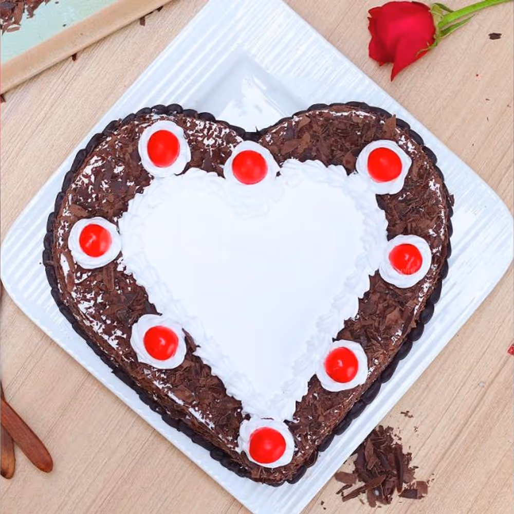 Buy Online or Send a delicious Heart-Shape Black Forest Cake anywhere in Delhi, Gurgaon, Noida, NCR, Bangalore, Hyderabad, Jaipur