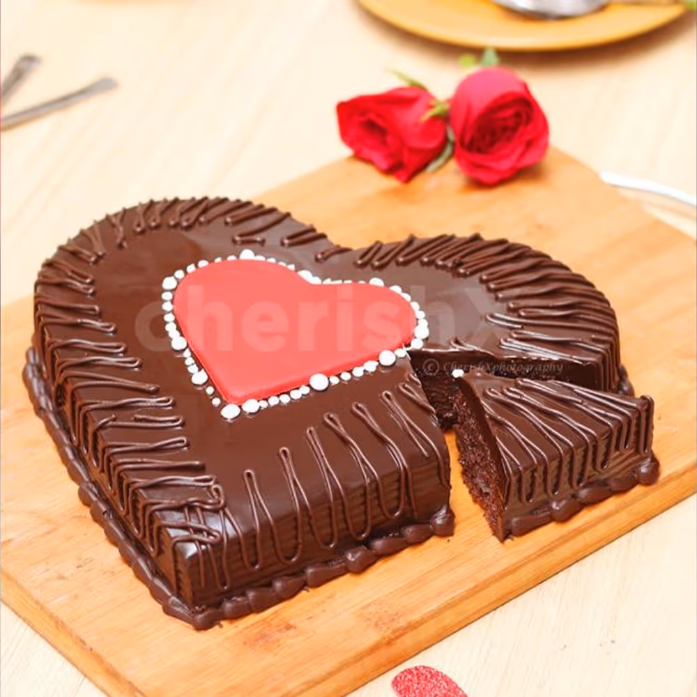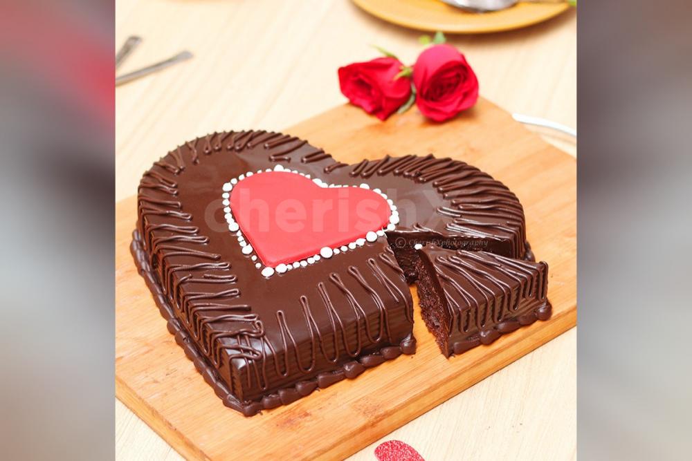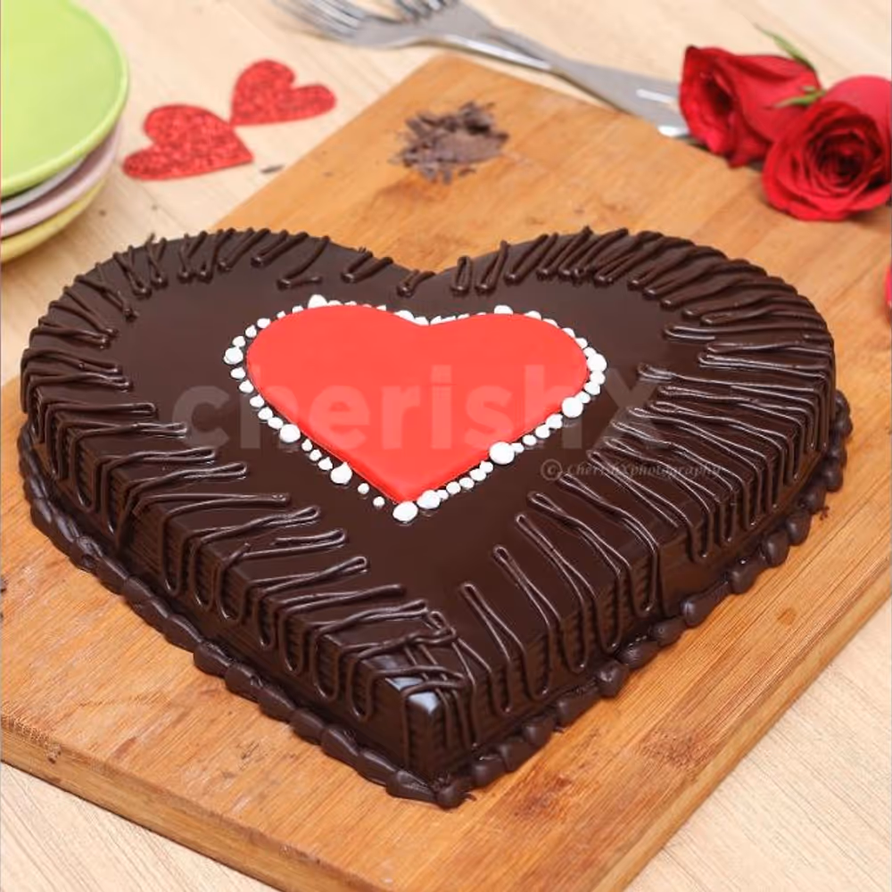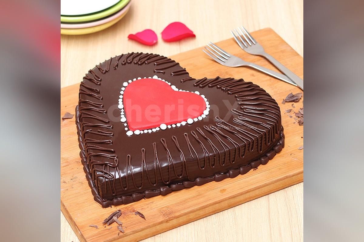 Buy Online or Send a delicious Heart Shaped Truffle Love Cake anywhere in Delhi, Gurgaon, Noida, NCR, Bangalore, Hyderabad, Jaipur