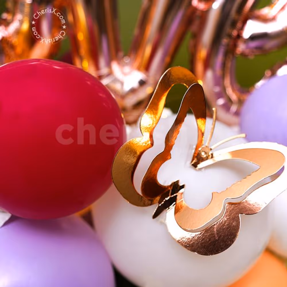 This Radiant Love Balloon Bouquet is curated with a Cursive LOVE Rose Gold Foil Balloon, Bunch of colourful balloons (Pastel Purple, Pastel Peach, White Latex, Magenta Latex and Golden Chrome), Rose Golden Butterflies, White Artificial Flowers, a Battery-Operated Light and a Card Message. All of this together creates this perfect Birthday or Anniversary Gift to give to your loved ones.