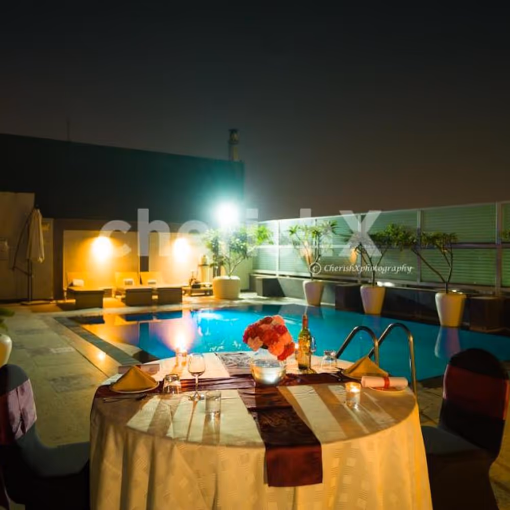 A poolside dining at the Gorgeous Country Inn, Gurgaon