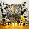Arch of 150 balloons of colour 50 Black latex, 50 White Latex, 40 Grey pastel and 10 Silver chrome balloons