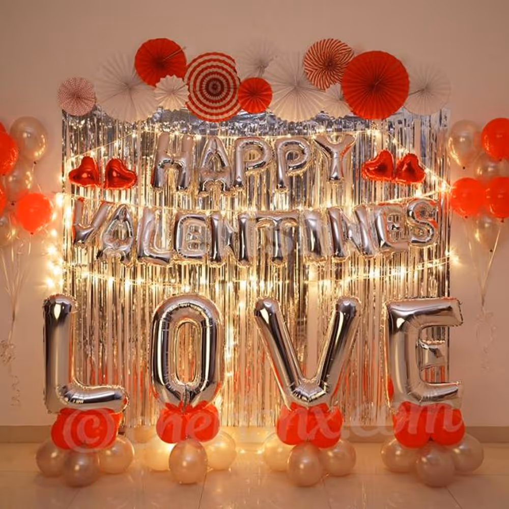 The special day that every couple waits for is moving closer! So, what are your plans this Valentine's Day? If you are thinking of surprising the love of your life with beautiful decor then you're at the right place! Have this elegant and charming Happy Valentine's Love Decor filled with silver frills and balloons at your home!