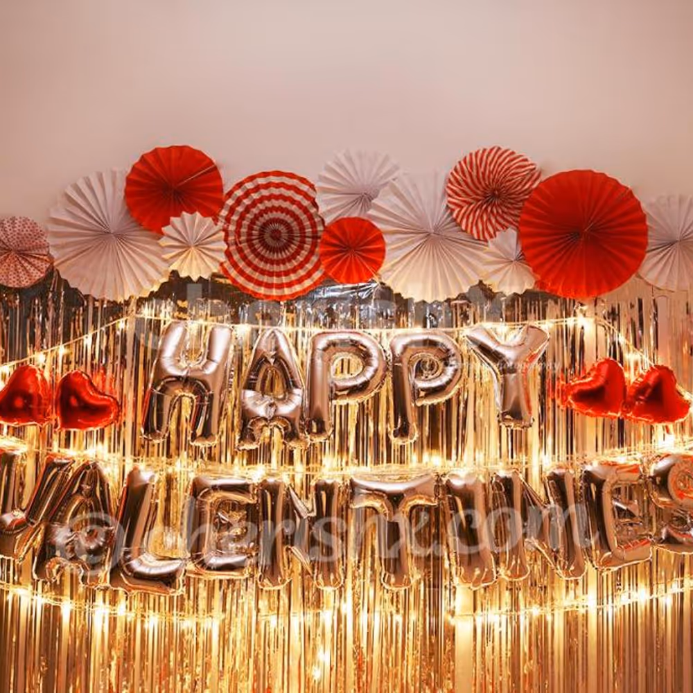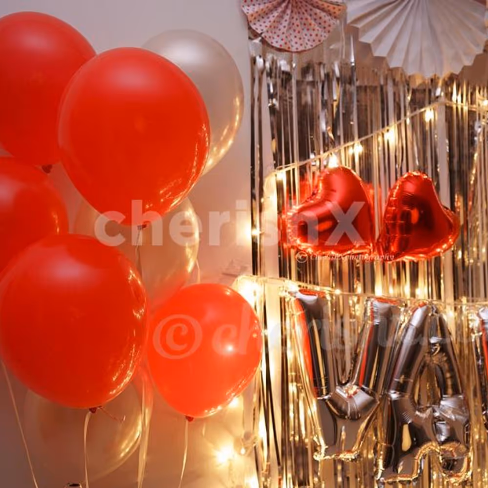 Have you been waiting to spend a romantic evening with your loved one? Get excited as CherishX has brought you a stunning Happy Valentine's Love Decor! You can feel the love in the air on this Valentine's Day with this extra-special decor. It will warm your heart with colourful balloons and fairy lights. The decor will be with silver frills on the walls of wherever you want the decor to be. On it, the "Happy Valentine's" Silver Foil Balloon will be placed. There will also be 'LOVE" Silver Foil Balloon attached with bunches of red and white balloons on the floor. Moreover, the decor will include two packs of white and red roseate and two fairy lights. Overall, the balloons will be around 50 that will make the room look dazzling. Your Valentine's Day will be unforgettable with this experience. All you have to do is book online with us and the rest is our work. So, celebrate your love with this alluring decoration right at your home!