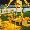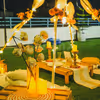 Decor: Cozy, boho-chic haven with a pixel LED-lit canopy, vibrant artificial flowers, hanging lamps, a low dining table, wooden candle stands, and an easel menu. Relax on mats with cushions, and discover surprise-filled wooden crates adorned with dried flowers, candles, and petals.
