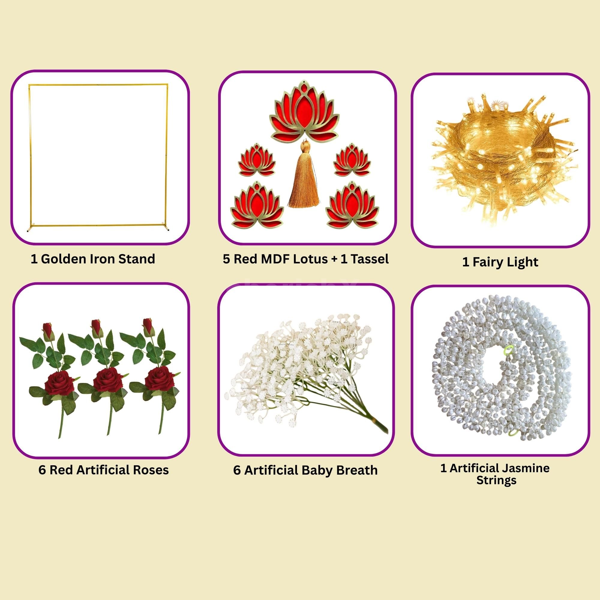 Lotus Candle Holders, Lotus Petals Pot, LED Candles, Mud Diya, Rose Petals and Carpet