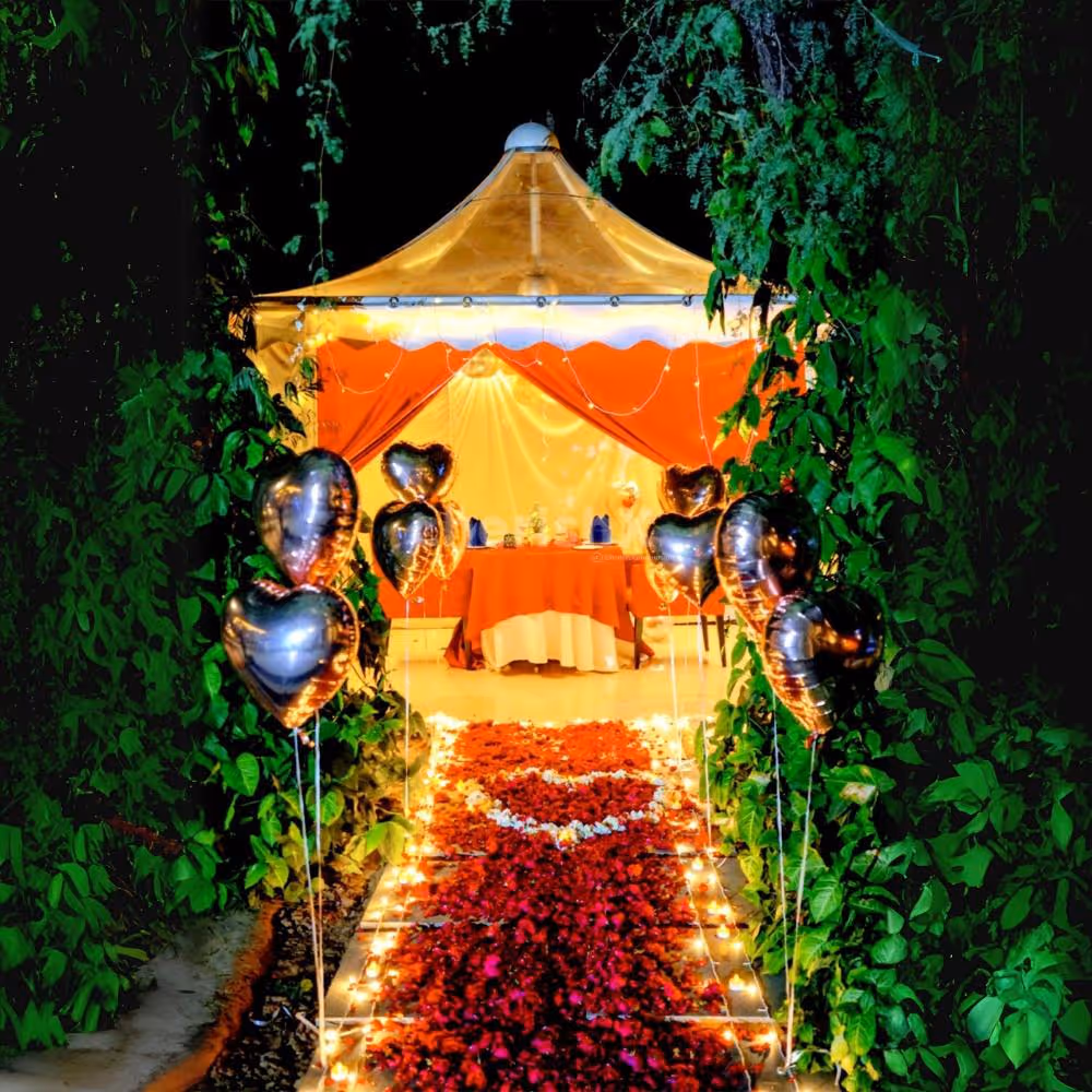 Sometimes indoor dinners can get pretty boring and you just need something fresh and different. So, here's an amazing outdoor cabana dining experience that will bring that much needed freshness.Reconnect with your partner as you dine on some mouth-watering food in the open, surrounded by green plants. Feel the cold grass under your feet as you sit on the beautifully decorated table. You will be welcomed with refreshing mocktails. As you sway and lose yourself to the ambient music, your delicious 3-course meal will be served which consists of 2 starters, 2 mains, and 2 desserts.