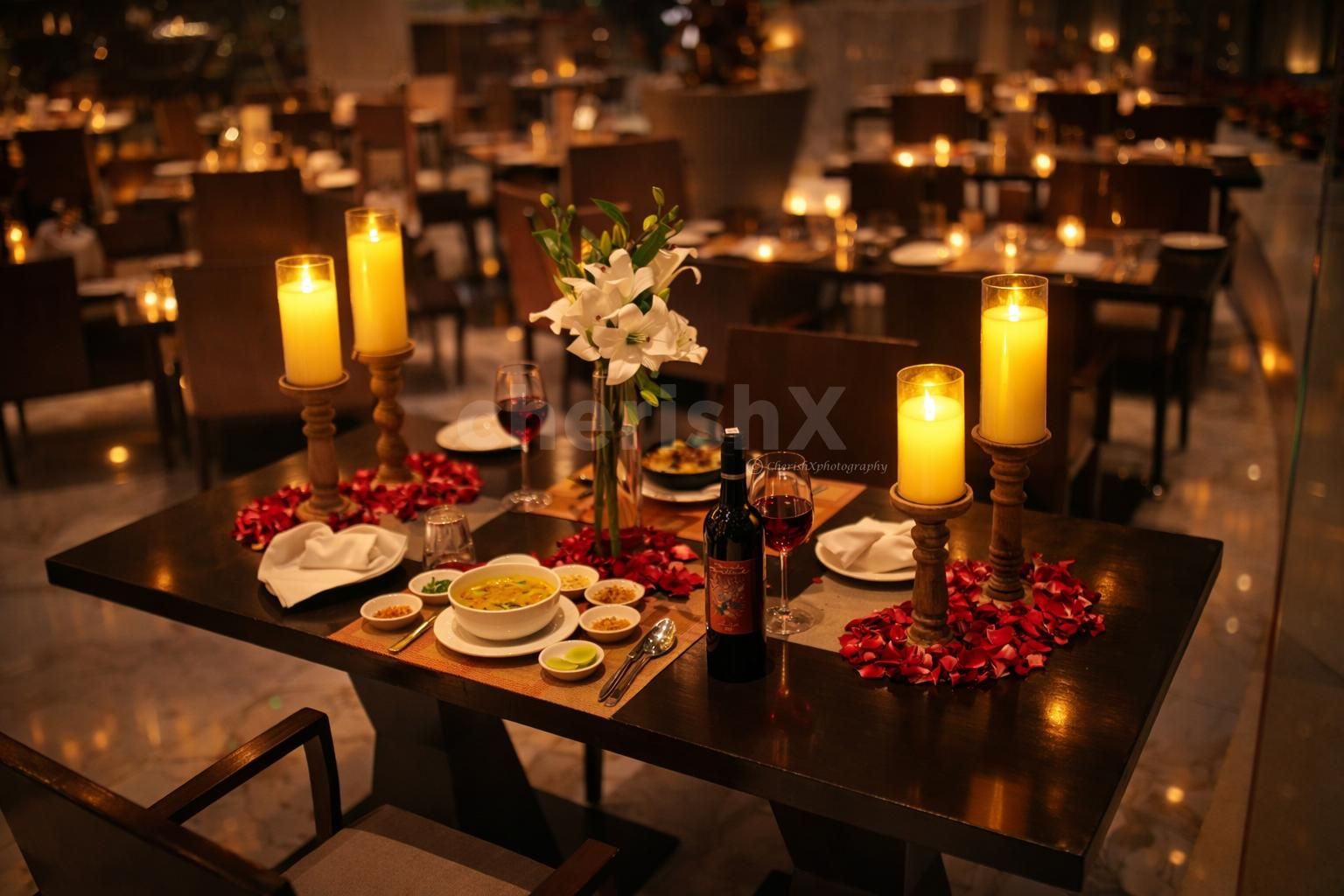 Indoor candlelight dinner for couples at the grand hotel | valentine special dining
