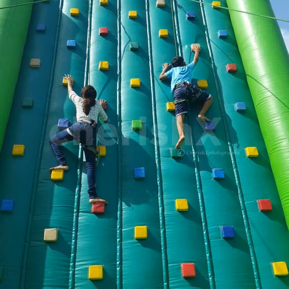 Inflatable 18x15 feet height climbing bouncy with safety walls all around.