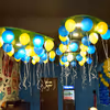 50 Balloons ceiling & on floor: Blue & Yellow (25 each)