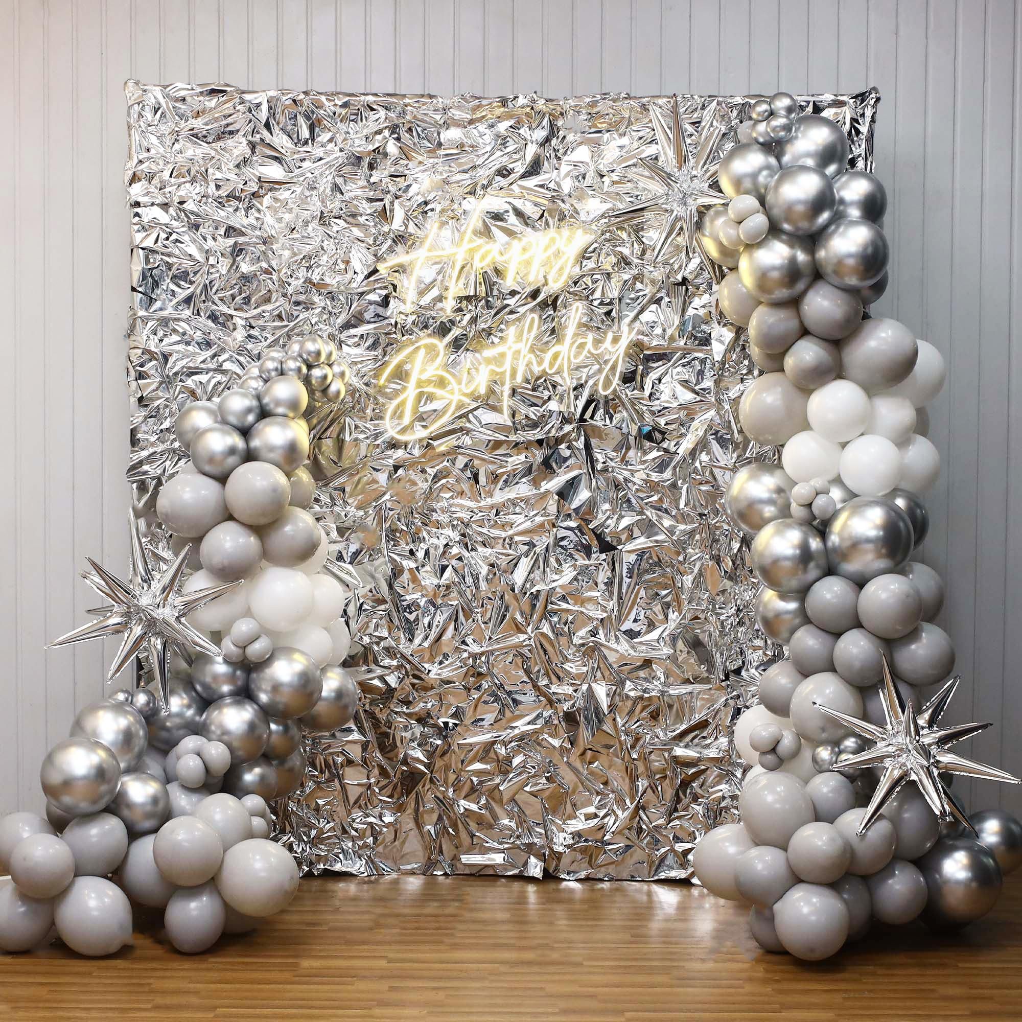 Arch of 180 Balloons- 100 Grey, 50 White, 30 Silver Chrome