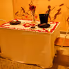 Decorated table with rose petals and candles