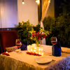 Decorated table with candles & flowers at the restaurant