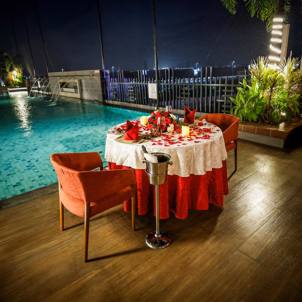 Celebrate love in a decorated table at poolside with a 4-course meal