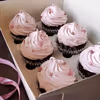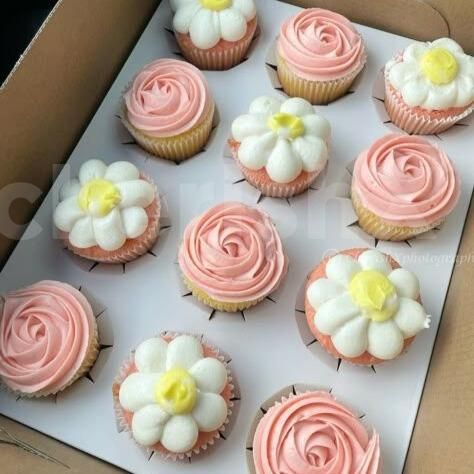 30 muffins along with 2 whipped cream cones and sprinkles