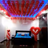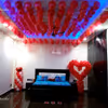 Helium balloons - We discourage helium balloons for home use as it is an asphyxiant - can suffocate you. We use air balloon & fix some of them to your ceiling with cellotape - giving looks of helium balloons. (No marks on ceiling, but please remove within 2 days).