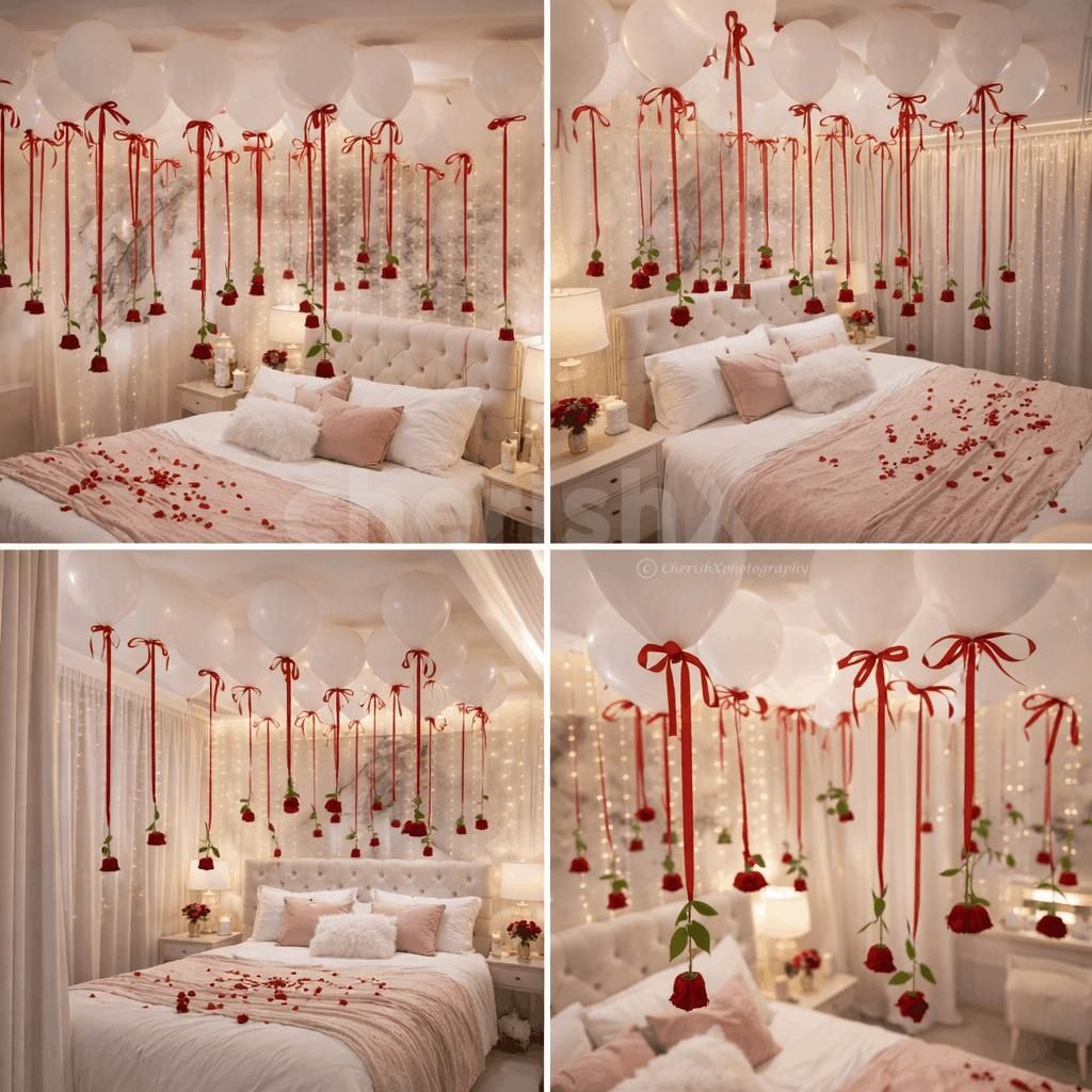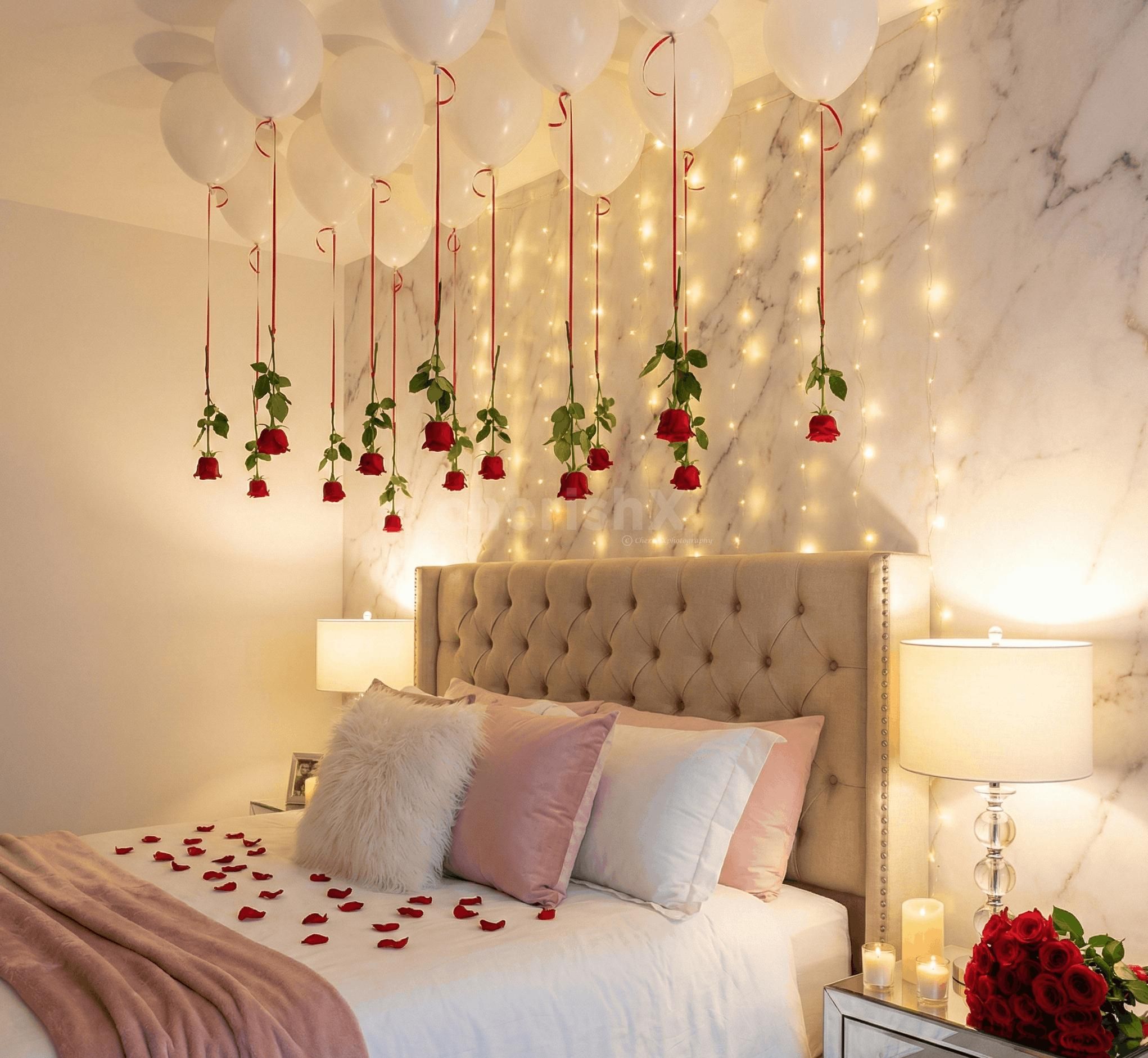 Valentine Rose Ceiling Decoration with Balloons & Lights