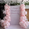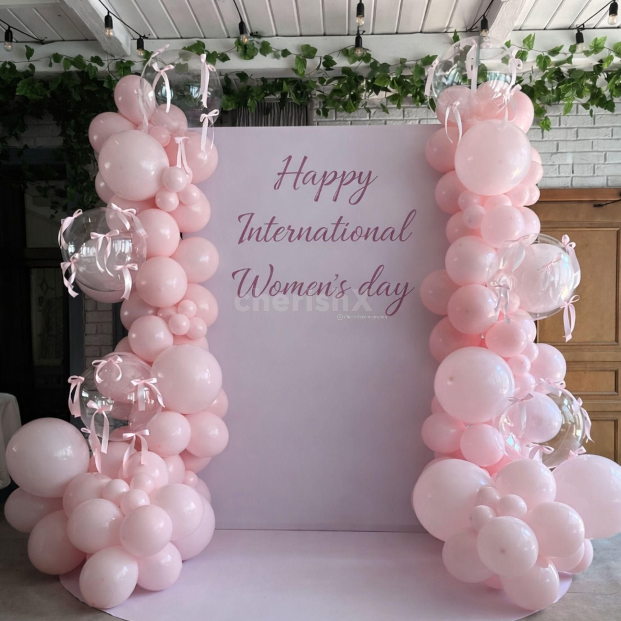 Celebrate Mother's Day in the most lovely way with this gorgeous, pastel-colored decor that looks like a fairytale come true. Focused around a "Happy Mother's Day" sunboard banner covered in lovely floral prints and watercolor butterfly designs, this arrangement exudes love and warmth. A gentle cascading arch of pastel pink and skin retro balloons wraps beautifully around the banner, providing a playful yet refined touch. Adding macron balloons and a beautiful butterfly decor piece adds whimsy. A pedestal and white round table finish the setting, which is ideal for flowers, gifts, or desserts. This arrangement adds elegance, happiness, and a warm celebration to an intimate garden brunch or an indoor cozy celebration.