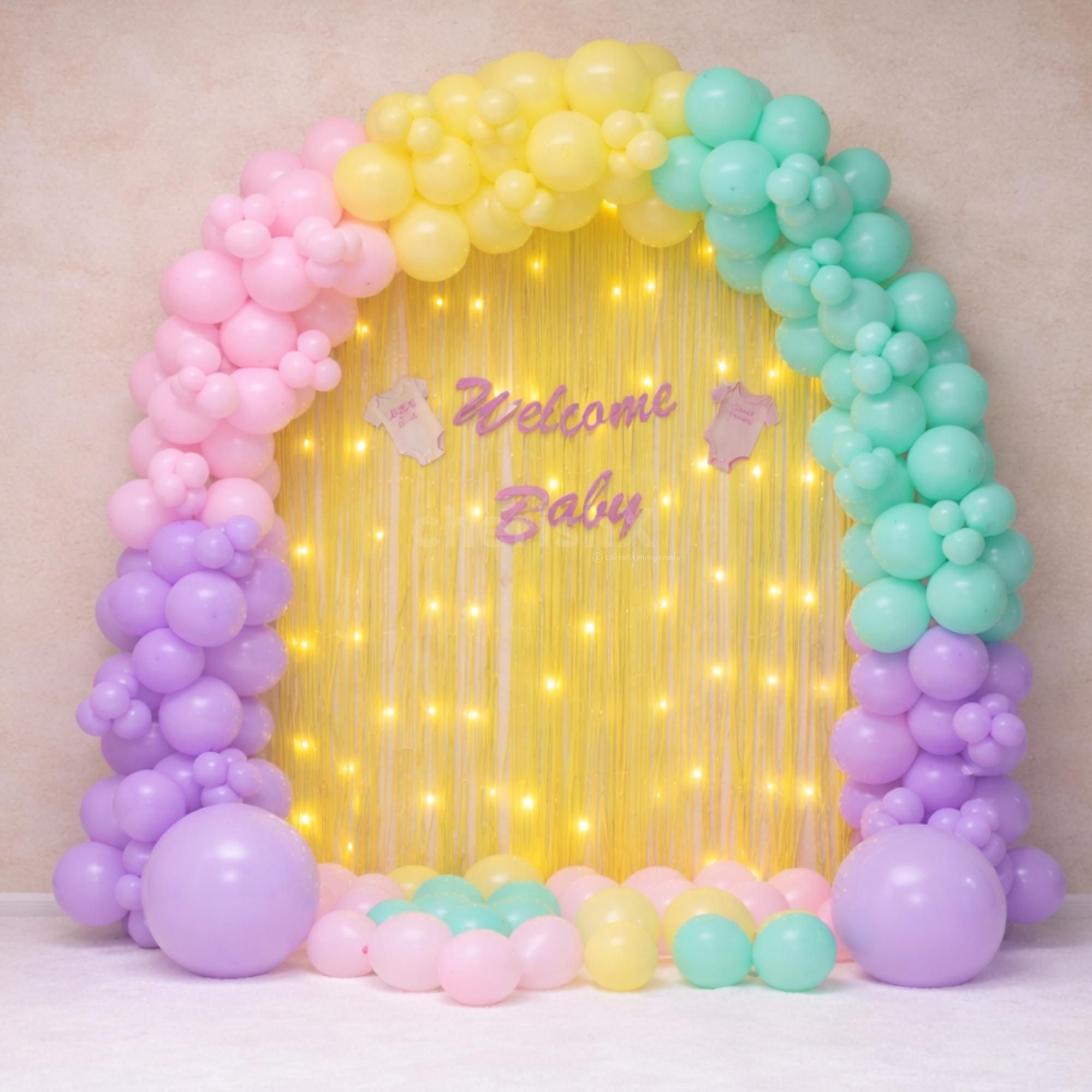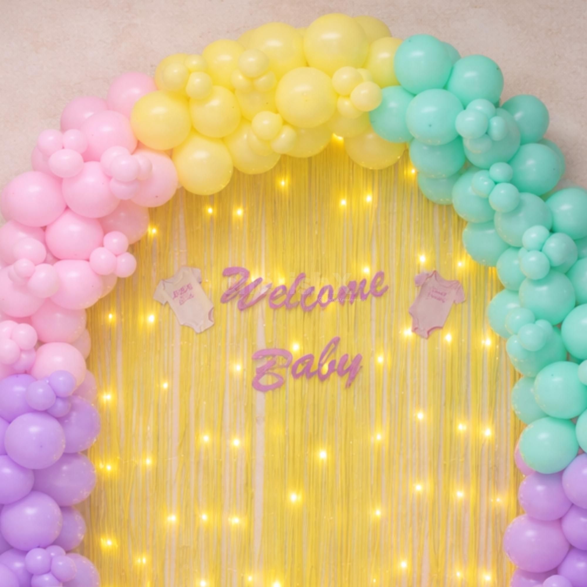 • Arch of 200 Balloons by using pink paste, green pastel, purple pastel and yellow pastel