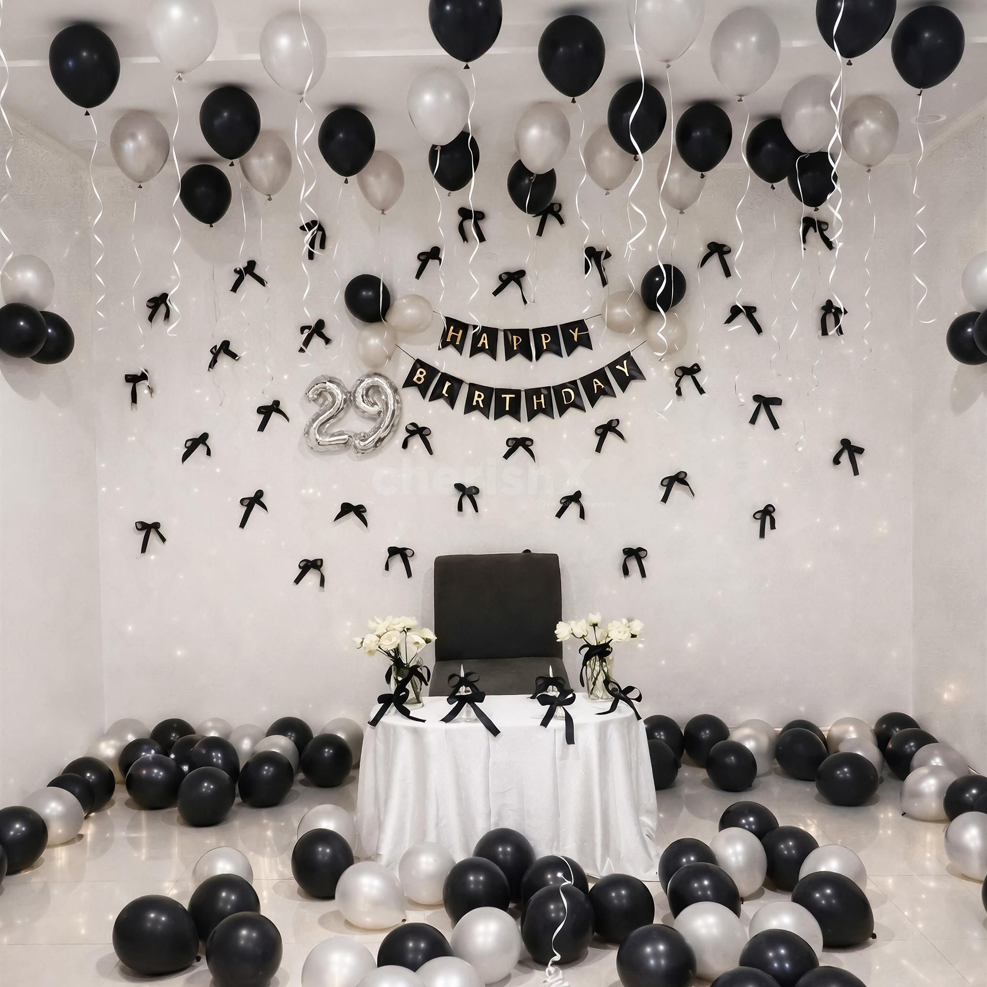 Modern Birthday Vibes with a Black and Silver Balloon Display