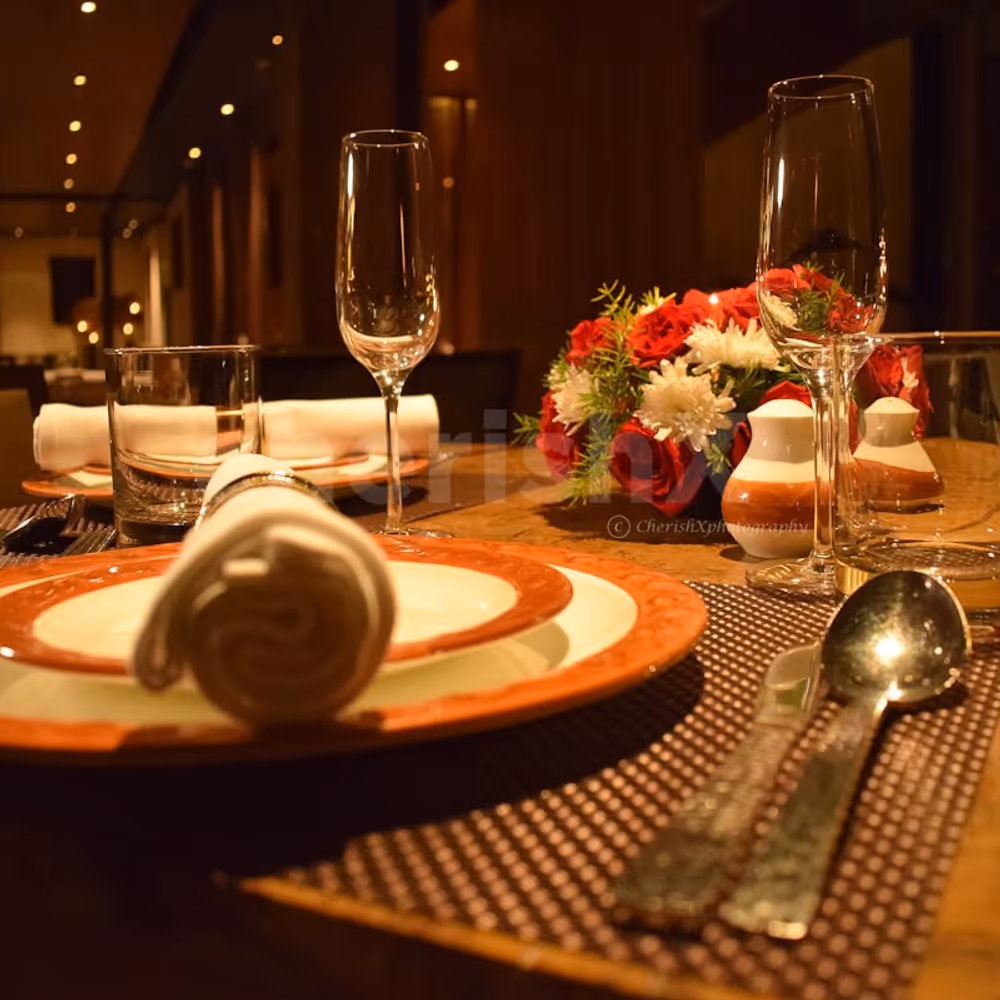 If you are thinking of rekindling that romance with your partner, then nothing works better than a special dinner/lunch, especially for the two of you. We will make it a memorable intimate dining experience with a table reserved in the cosy corner of a 5 Star hotel’s restaurant decorated with candles and flowers. The place is located in the centre of Delhi, Connaught Place, which makes it very convenient and easy to reach. There won’t be any parking hassles as well with the valet parking services. We turn the whole dining experience into a dreamy one, served with style right in the heart of the capital. You start off being greeted at the reception and make your way to the restaurant through an elaborate lobby. Once you enter the restaurant, you sit with your date at the corner table and savour the welcome mocktail in the midst of a dim light setting to make the moment soothing and lovey-dovey for you. There will be a private butler assigned for you. Enjoy amidst light music playing in the background with an exotic 3-course North Indian Meal served on high-end glass crockery paired with beautiful napkins. To make things more aww-worthy and exciting and to woo your partner in style, you can even request champagne sitting on ice just beside the two of you at some extra cost from the bar. And if you still want to add some extra flavour to our standardised package, then consider a flower bouquet or a cake (at extra cost). With this experience, you will eliminate the booking hassles and get a great seating reserved just for you!