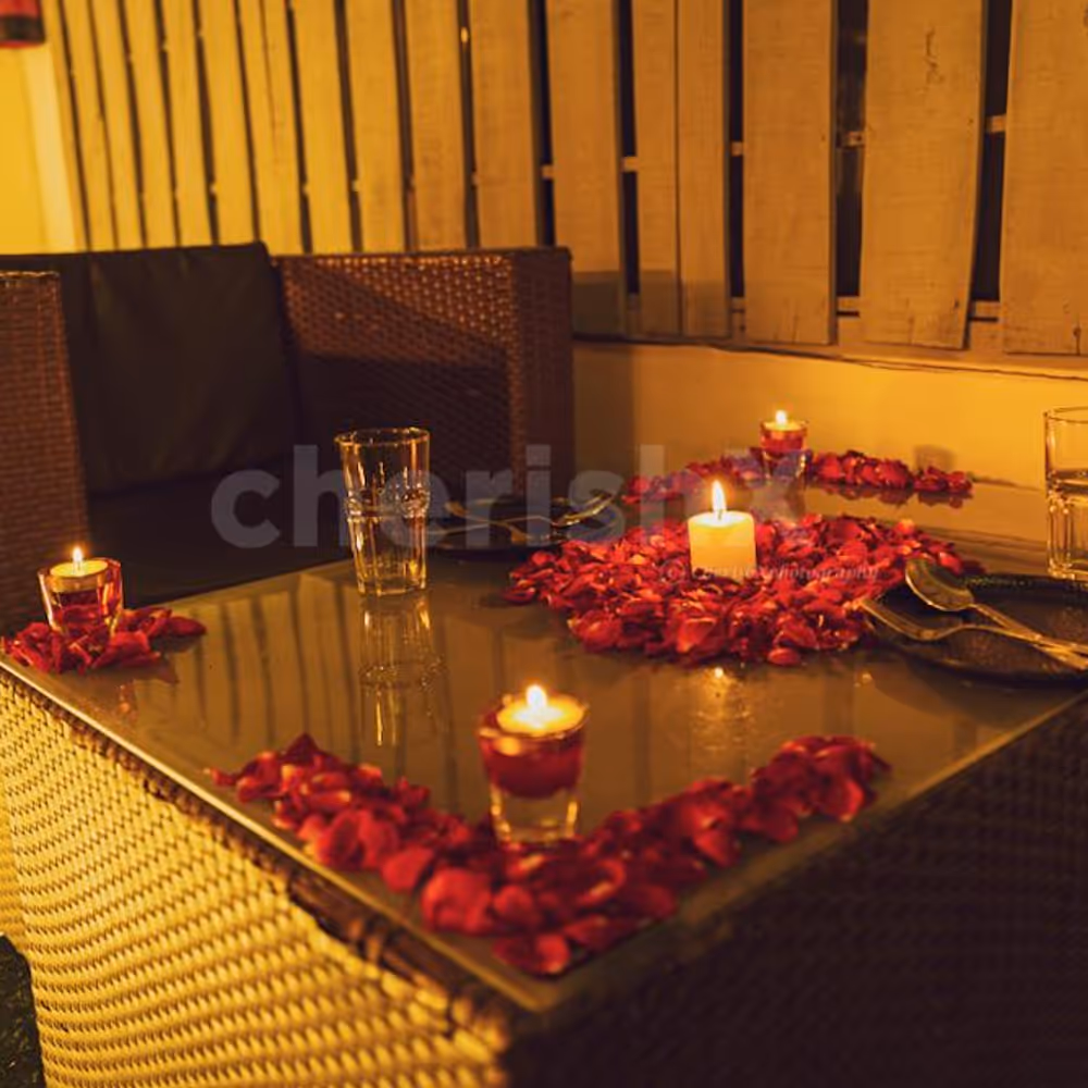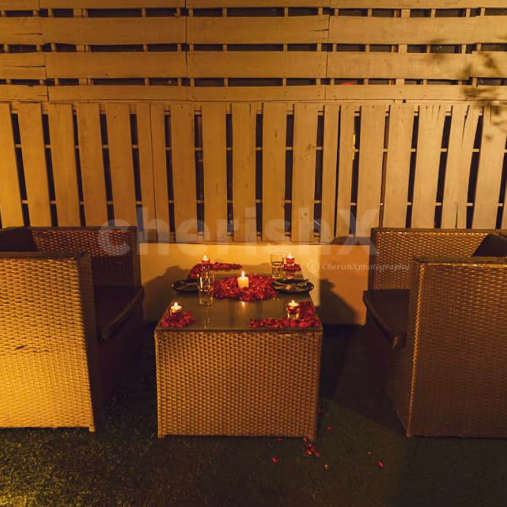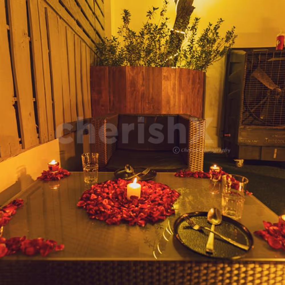 3 course Candlelight dinner in a garden setting in delhi with romantic decoration