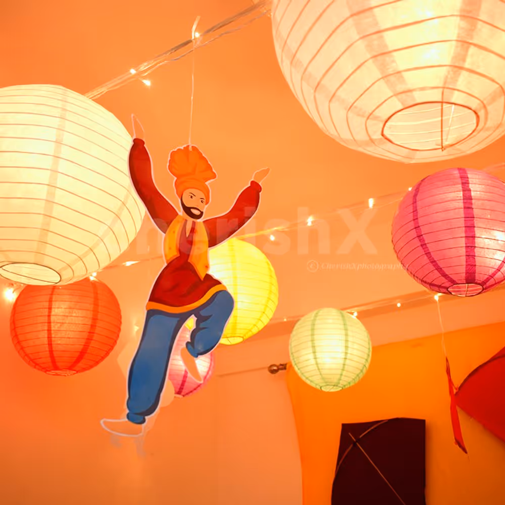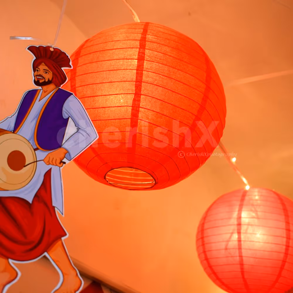 The festival of Lohri gives a reason to unfold laughter and celebration. To add to the brightness of this occasion, CherishX brings a traditional vibe to your home with our festive Lohri Decoration. The vibrance of this colorful decor won’t fail to add an element to your Lohri celebrations. This Lohri Decoration is done with elegant kites and beautiful paper lanterns. The venue is adorned with fairy lights to add to the glimmer of Lohri celebrations and set up for the perfect winter evening.