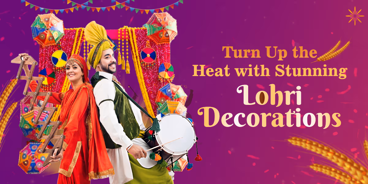 Modern Lohri decoration trends include LED-lit drapes, traditional backgrounds, and themed colour schemes like orange and yellow. CherishX stays up-to-date with the world while maintaining the essence of Lohri celebrations.
