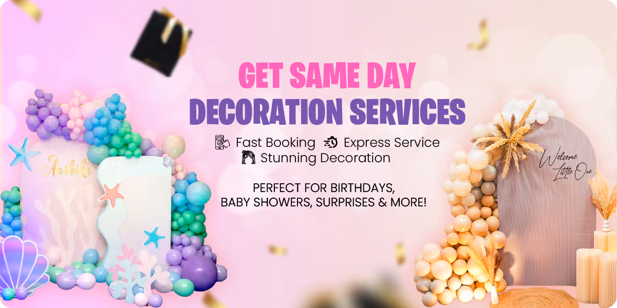 CherishX's Same Day Decorations are available everywhere in Ahmedabad. These elegant decorations are suitable for all occasions like birthday, anniversary, etc.